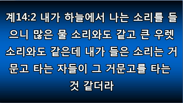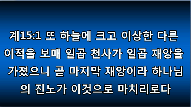 개역개정성경(큰글배경) 16-9 개역개정 (큰글) 개역한글 ppt 한영ppt 요한계시록12장.pptx 66계 12.mp3http://tv.kakao.com/embed/player/cliplink/75822837?service=flash 1 A great and wondrous sign appeared in heaven: a woman clothed with the sun, with the moon under her feet and a crown of twelve stars on her head.1 하늘에 큰 이적이 보이니 해를 옷 입은 한 여자가 있는데 그 발 아래에는 달이 있고 그 머리에는 열두 별의 관을 썼더라1. 天上現出大異象來:有一個婦人身披日頭,脚踏月亮,頭戴十二星的冠冕。 2 She was pr..