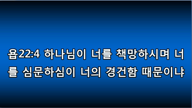 개역개정성경(큰글배경) 16-9 개역개정(큰글) 18욥 22.mp3개역한글 ppt한영ppt 욥기22장.pptx영어성경 Job 22.mp3 욥기22장.hwp http://tv.kakao.com/embed/player/cliplink/76435964?service=flash 1 Then Eliphaz the Temanite replied:1 데만 사람 엘리바스가 대답하여 이르되1. 提幔人以利法回答說: 2 "Can a man be of benefit to God? Can even a wise man benefit him?2 사람이 어찌 하나님께 유익하게 하겠느냐 지혜로운 자도 자기에게 유익할 따름이니라2. 人豈能使神有益呢?智慧人但能有益於己。 3 What pleasure would it give th..