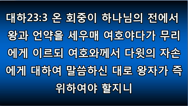 개역개정성경(큰글배경) 16-9 개역개정(큰글) 14대하 13.mp3 개역한글 ppt한영ppt 역대하13장.pptx영어성경 2nd Chronicles 13.mp3 역대하13장.hwp http://tv.kakao.com/embed/player/cliplink/76365179?service=flash 1 In the eighteenth year of the reign of Jeroboam, Abijah became king of Judah,1 여로보암 왕 열여덟째 해에 아비야가 유다의 왕이되고1. 耶羅波安王十八年,亞比雅登基作猶大王, 2 and he reigned in Jerusalem three years. His mother's name was Maacah, a daughter of Uri..